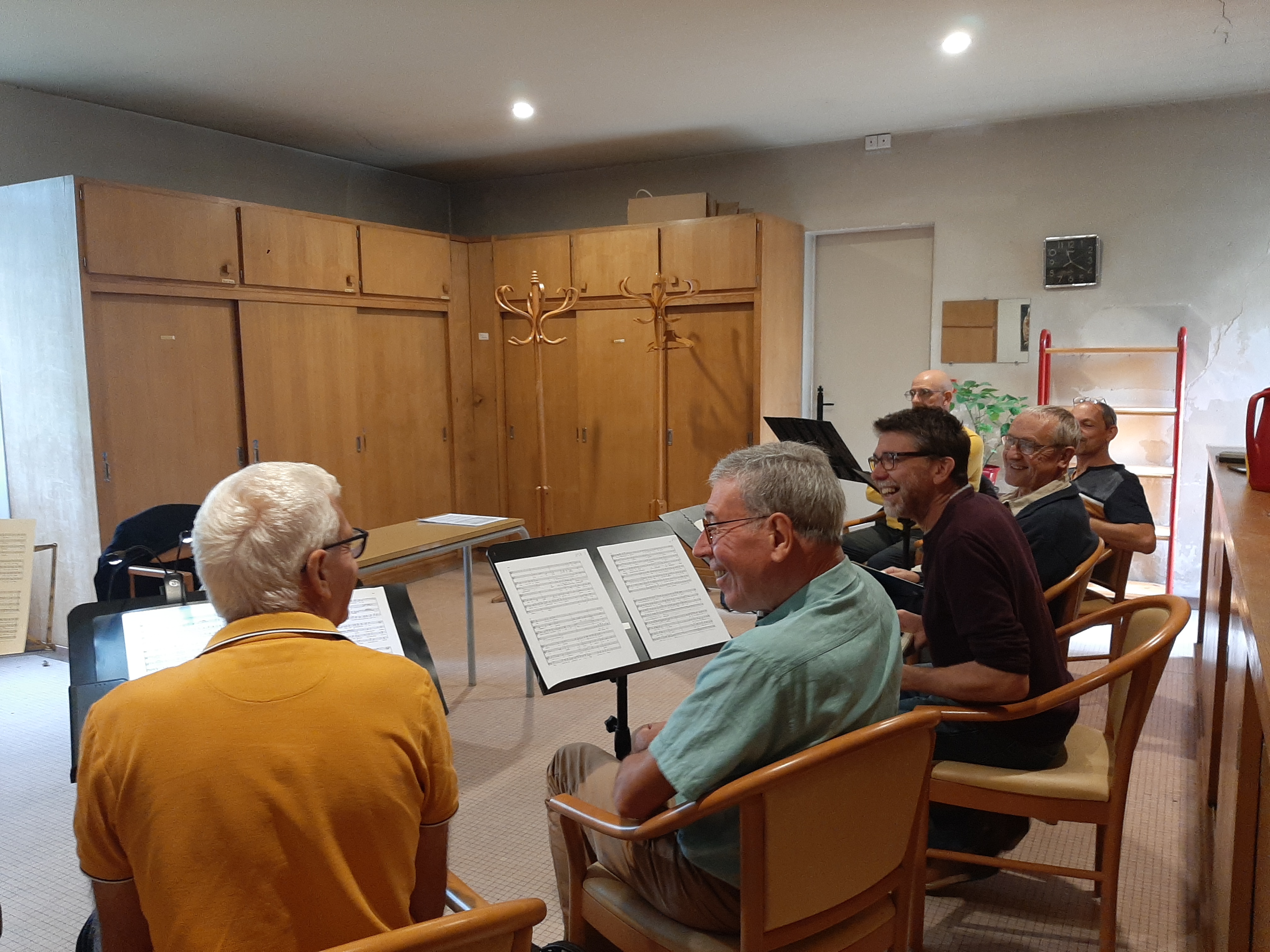 Une première répé au top ! Marthe 07/10/2024 Ce samedi 7 septembre, grâce à nos super chefs du jour ! Catherine, qui a fait travailler les voix de femmes, et Philippe qui a fait répéter les ténors et basses. Merci à eux !